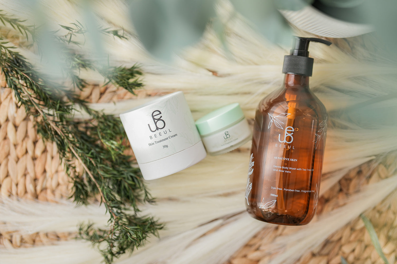 Start your routine with our deeply hydrating body wash infused with tea tree oil and aloe vera to lock in moisture and protect your sensitive skin all day long.